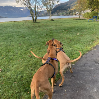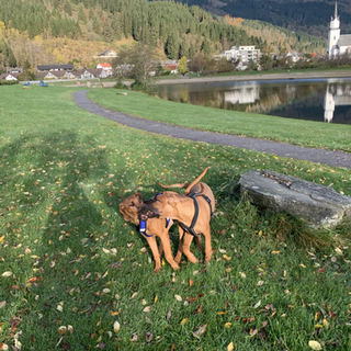 Etter utstillingen fikk de leke og herje ute sammen med mammaen sin ❤️ Vi er superstolte av disse valpene og hvordan de utvikler seg! 😍